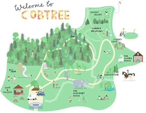 The main entrance, car park and café are at the bottom left of the map ... have you found the secret glade at the north end of the park?